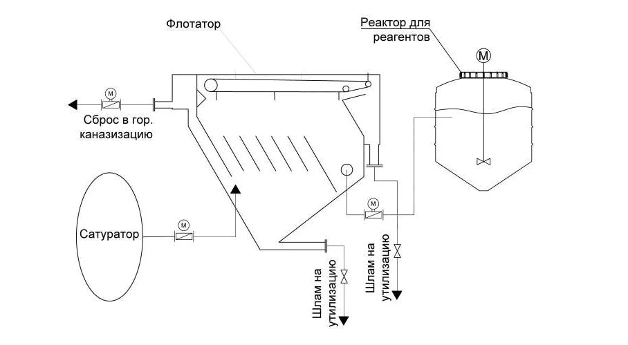 Это специальные аппараты, которые очищают воду от примесей, которые не растворяются в ней. Они насыщают жидкость мельчайшими пузырьками газа, те прилипают к частицам жиров, масел или взвесей и выносят их на поверхность. Образовавшуюся пену (шлам) легко собрать и удалить.