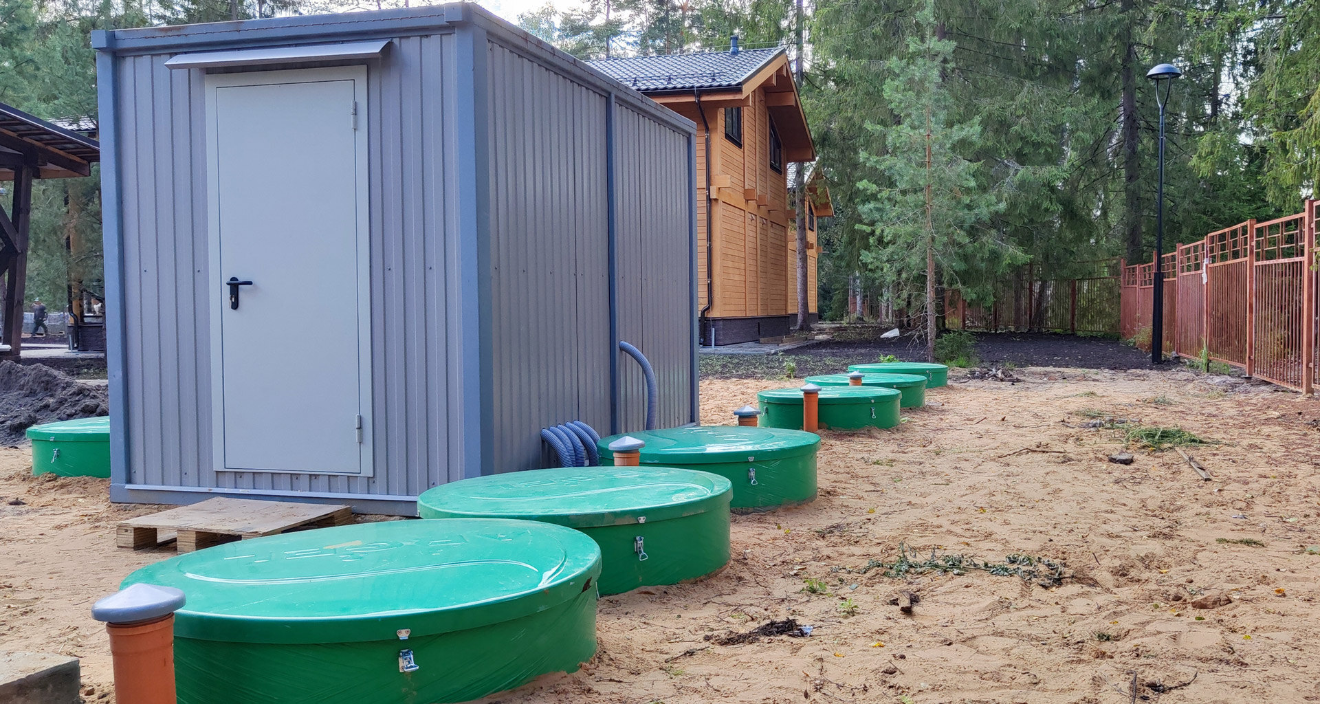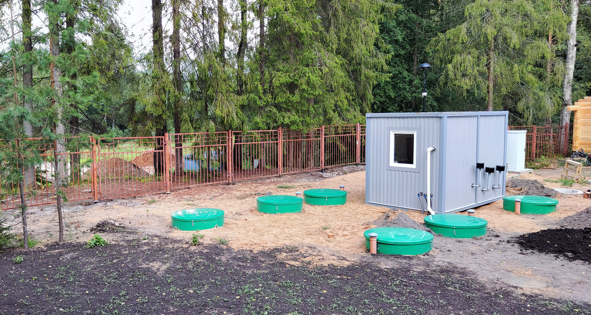 Производство и монтаж станции биологической очистки хозяйственно-бытовых сточных вод производительностью 50 м3/с для базы отдыха «Хлыниха парк», расположенной в Клинском районе Московской области.