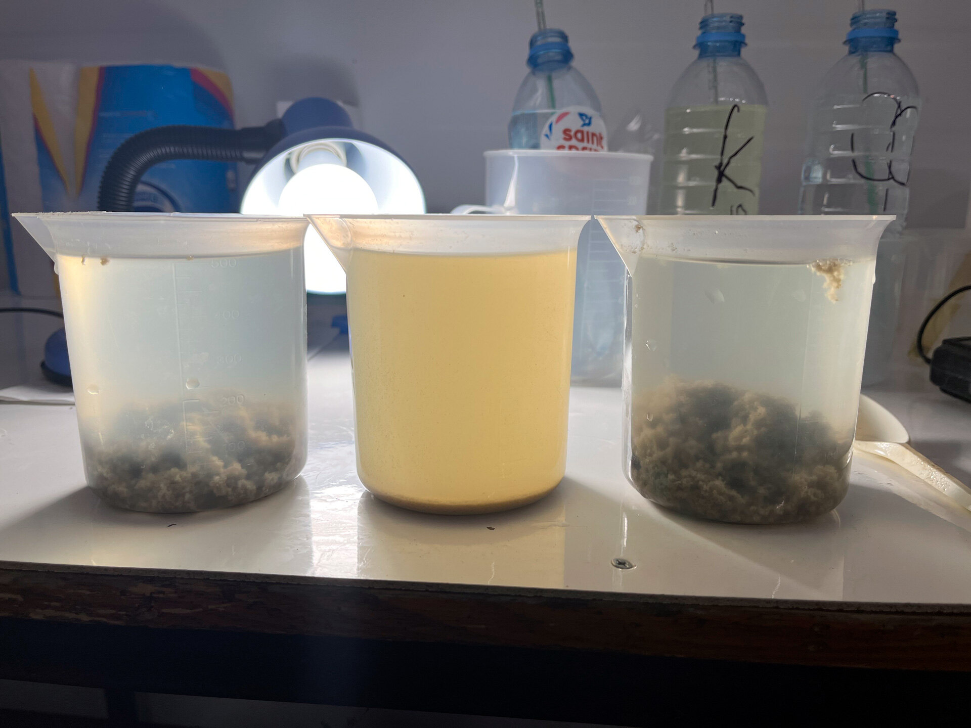 Следующим этапом нам требовалось подобрать реагенты и их количество, необходимое для обеспечения эффективного процесса очистки. Все это можно осуществить только при натурных исследованиях сточных вод. Поэтому, по согласованию с Заказчиком, нами был осуществлен выезд в г. Кингисепп с целью проведения данных работ. В результате, мы подобрали эффективную схему реагентной обработки, давшую в ходе эксперимента хороший результат.