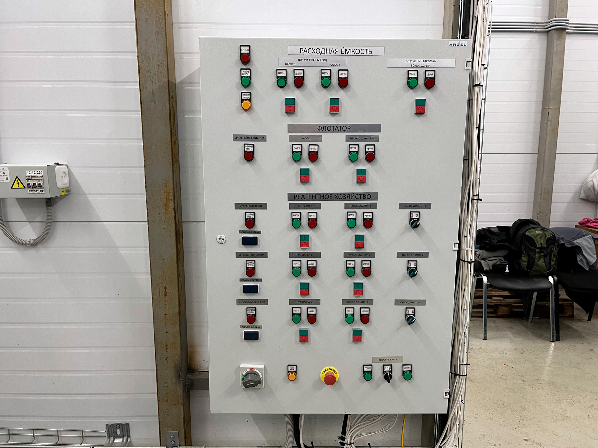 Для управления электрооборудованием очистных сооружений были предусмотрены комплектные шкафы, имеющие как автоматический, так и ручной режимы работы.
